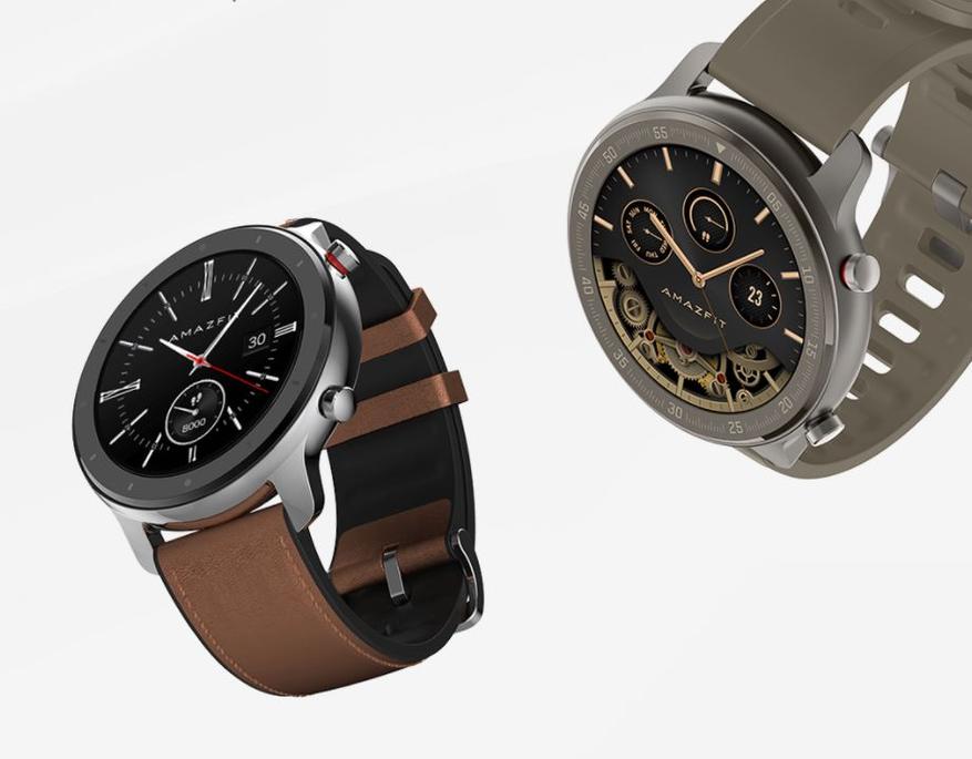 Старые-добрые GTR, которые уже стали классикой: корпус из стали или алюминия в сочетании с керамикой, кожаный ремешок с внутренним слоем из силикона и круглый AMOLED дисплей с функцией Always On. Время работы от одного заряда до 24 дней (без режима Always On). По функциональности часы мало отличаются от тех предыдущих Amazfit Bip U, здесь нам предлагают широкий набор спортивных режимов, отслеживание шагов и пульса, уведомления на экран, а также вспомогательные функции, вроде управления музыкальным плеером.